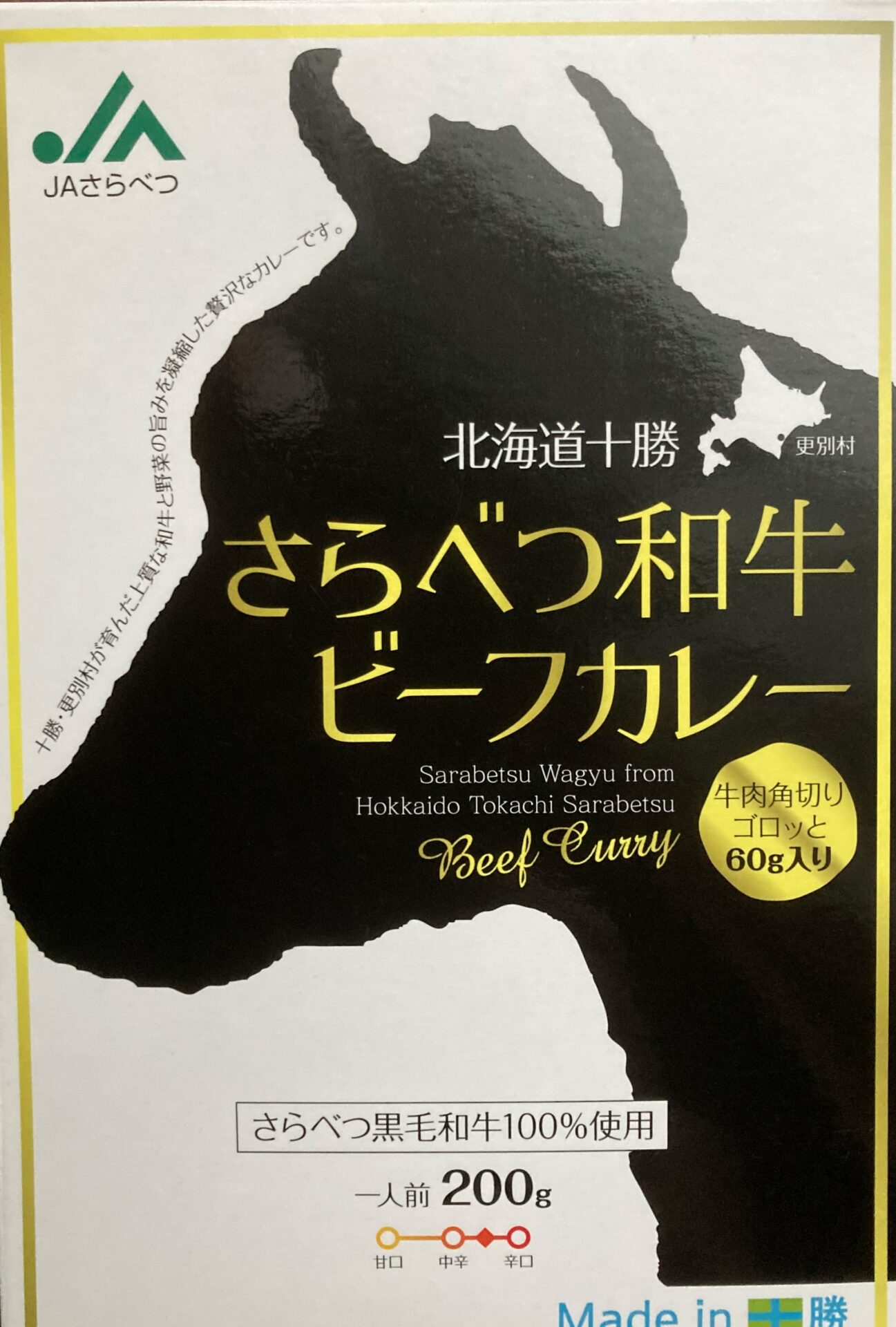 おいしい。肉,おいしい。噛みしめて,味わいあり。カレーを口にはこずと,小さめにカットされた牛肉に,何度も出会える。玉ねぎ,にんじんがルーにとけこんでいて,調和がとれている。おいしい。これは,パッケージを見たらまた買いたくなるカレーだ。